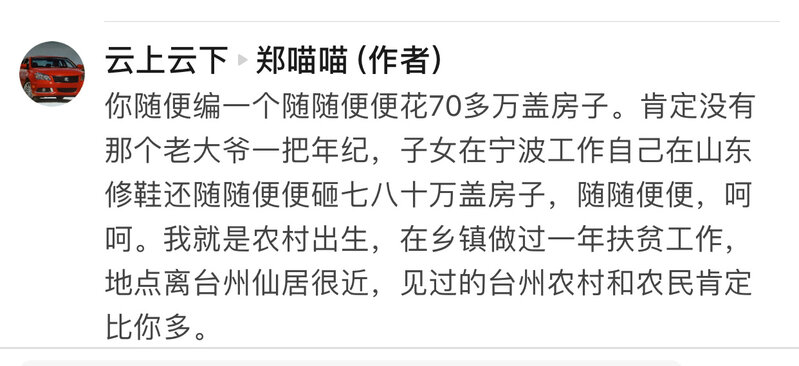 另外,农村的这种攀比,也跟大家的眼界有关。比如我妈,根本不懂投资是什么,也不知道物价上涨人民币贬值有多可怕,她觉得把钱存银行才是最安稳的。我家这次翻高楼的预算够付城市近郊一套房的首付了,而且杭州现在发展得还不错,我觉得与其孤注一掷去博一个面子和不确定的拆迁,还不如先在城里买套房,这样城里有套房,农村的房子可以等拆迁,才能实现利益最大化。但是我妈是不懂这些的。她甚至觉得,既然买房,那必须要全款一次付清,一点点地还贷款,对她来说简直是折磨。